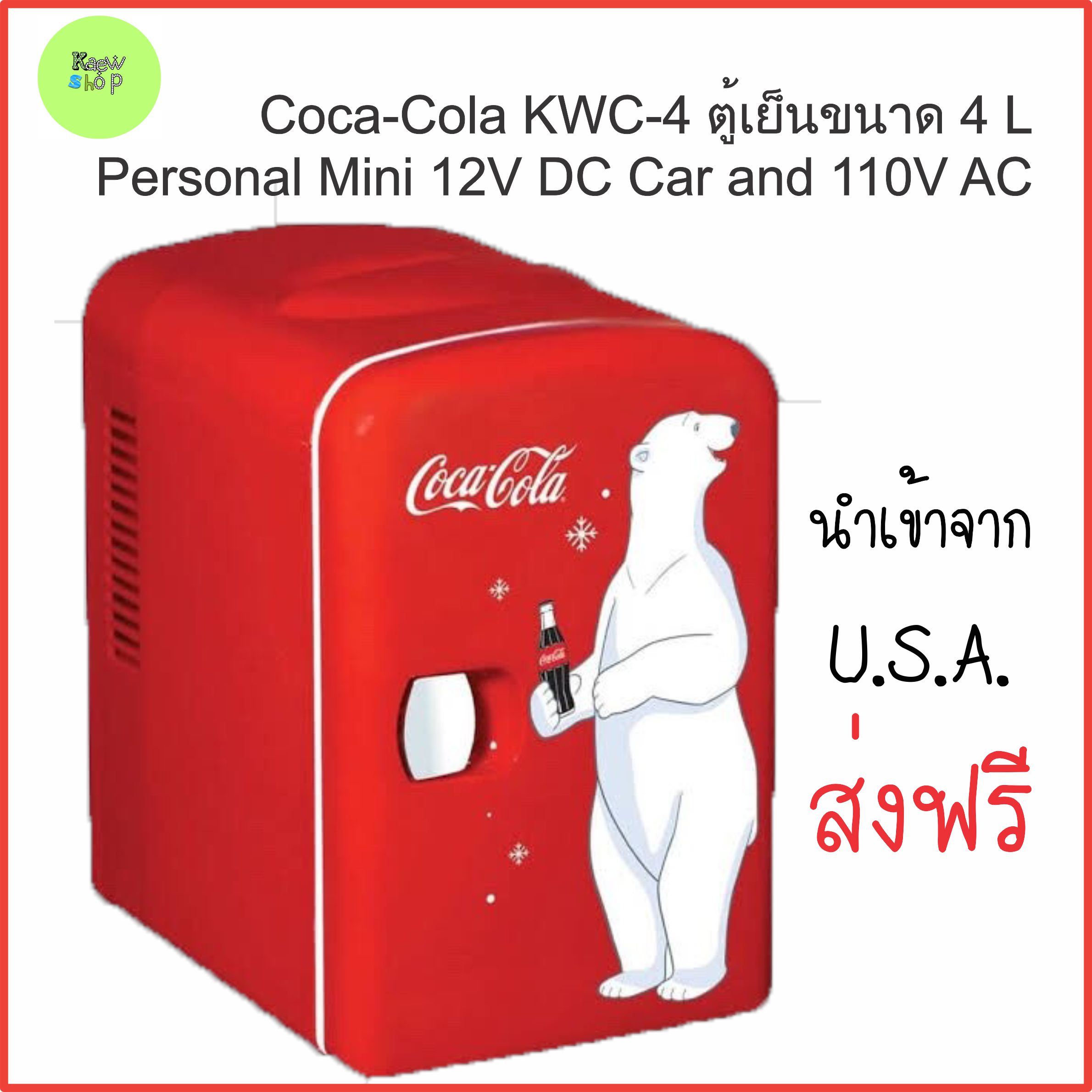 - ตู้เย็นพกพาในรถ ยี่ห้อ Coca-Cola car refrigerator mini Size 4 L, รุ่น KWC-4B ใช้ไฟDC Car 12V , Red by Koolatronขนาด 188?240?265mmสินค้าของแท้ 100% นำเข้าจากสหรัฐอเมริกา ผลิตจากประเทศจีน (เป็นสินค้าที่ผลิตจากประเทศจีน เพื่อส่งขายในอเมริกา)